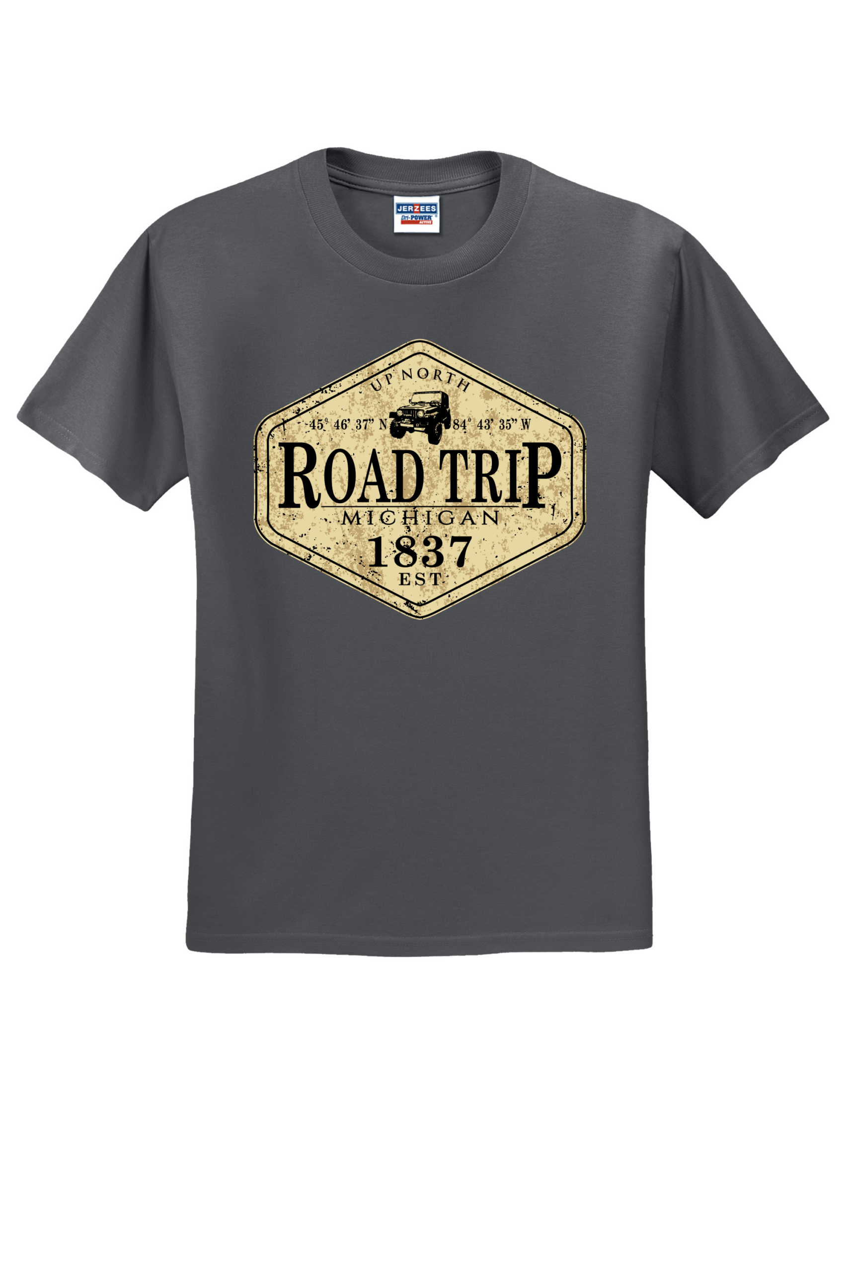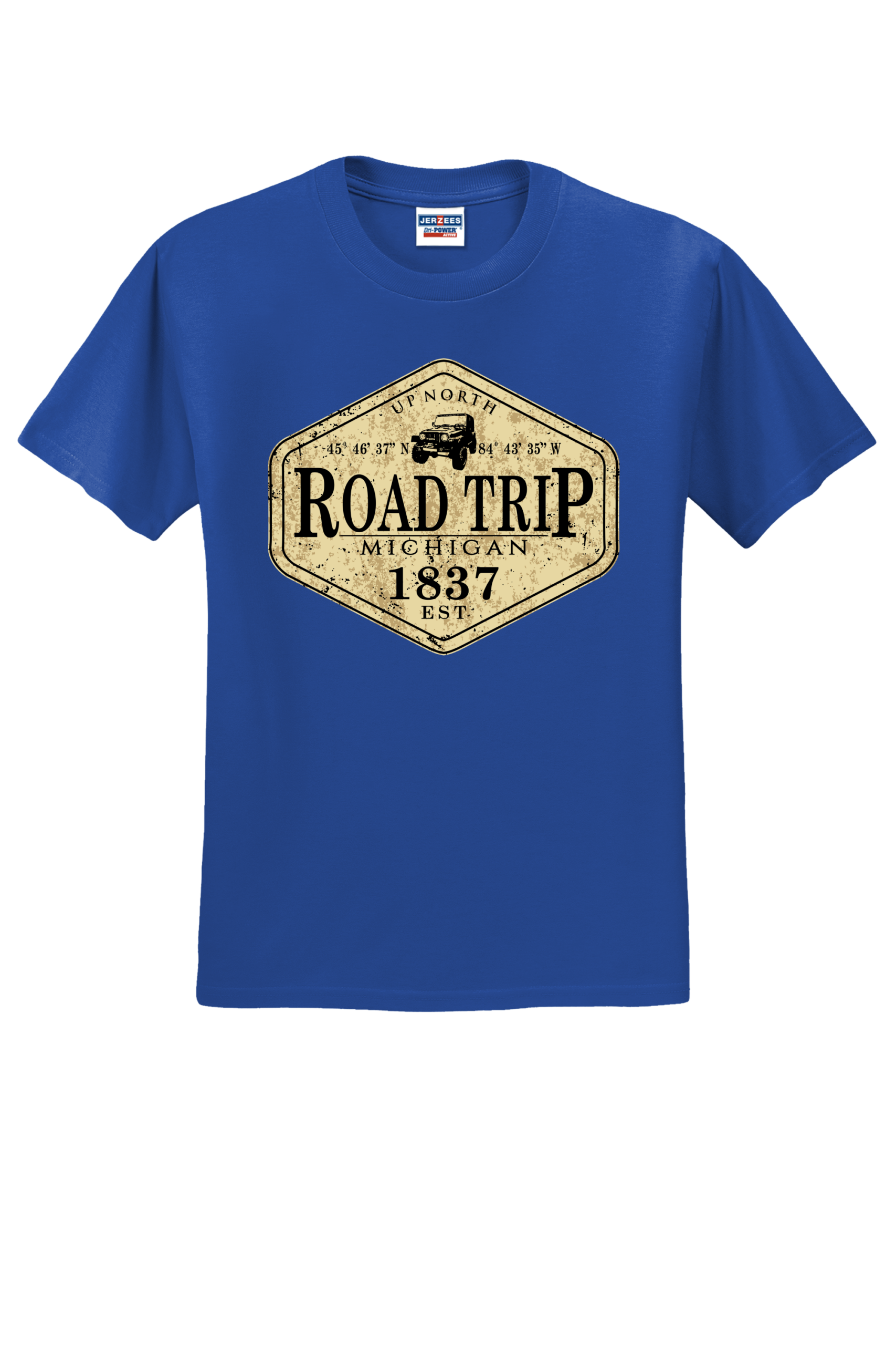 Hit the road in comfort and Michigan style with our Up North Road Trip – Michigan 1837 shirt. Printed on a premium Jerzees 50/50 tee, this design features a vintage-travel badge, directional coordinates, and a rugged off-road vehicle — capturing the spirit of Michigan adventure. Soft, durable, and ready for every camping trip, cabin weekend, and ride up the Fresh Coast. Made from a perfect blend of cotton and polyester, this tee combines comfort and durability with a vibrant, long-lasting print. This shirt ensures your design stands out with brilliant colors and sharp details, making it ideal for any occasion. Make a statement with a T-shirt that’s as stylish as it is comfortable.
