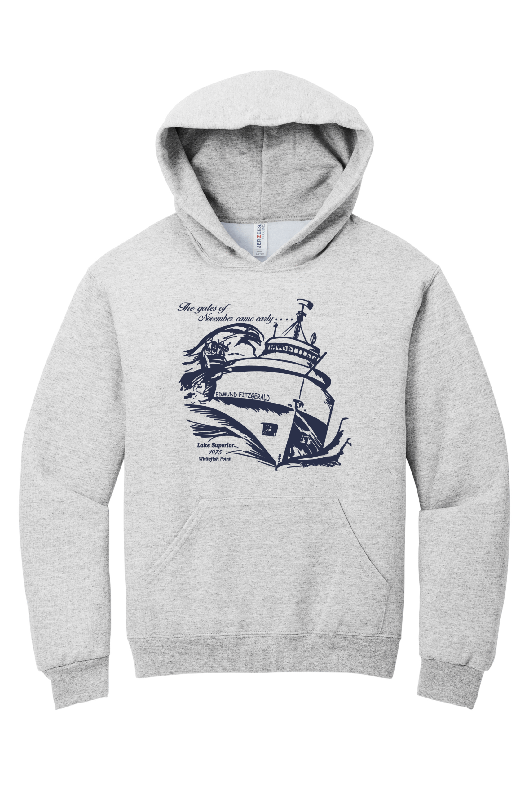 Commemorate one of the Great Lakes’ most legendary ships with our Edmund Fitzgerald “Gales of November” shirt. This exclusive design pays tribute to the 1975 tragedy on Lake Superior, featuring the ship’s striking bow and the haunting words “The gales of November came early…”