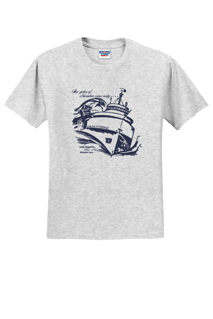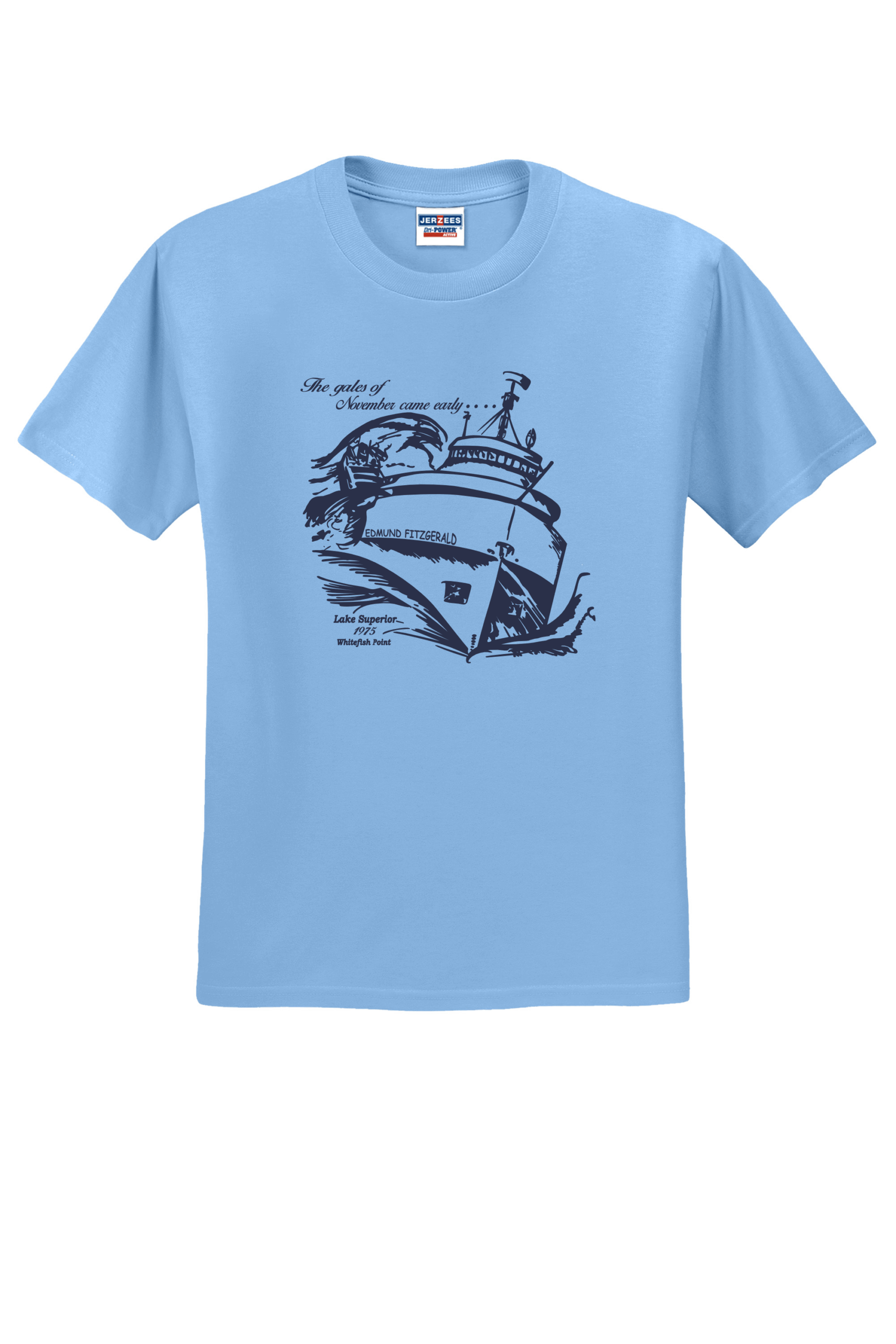 Crafted on soft, durable Jerzees 50/50 cotton-poly blend tees, this design is available in three classic shirt colors and a selection of warm hoodies for cooler days on the lake. Perfect for history enthusiasts, Great Lakes locals, and anyone moved by the legend of the Edmund Fitzgerald.