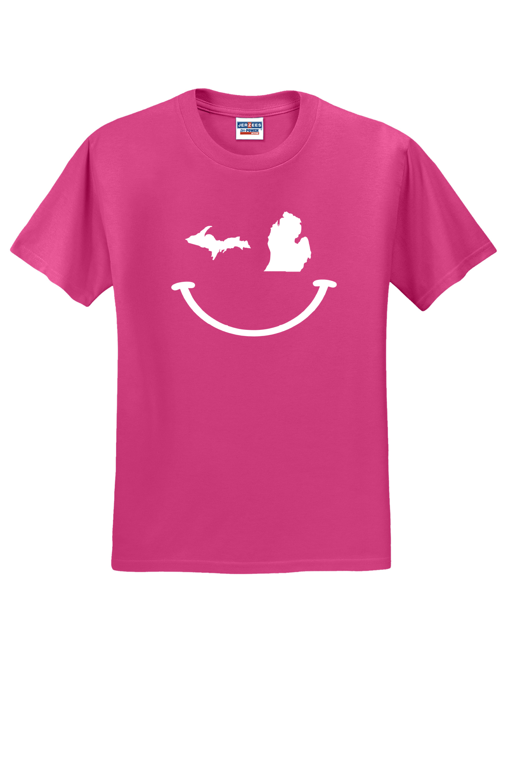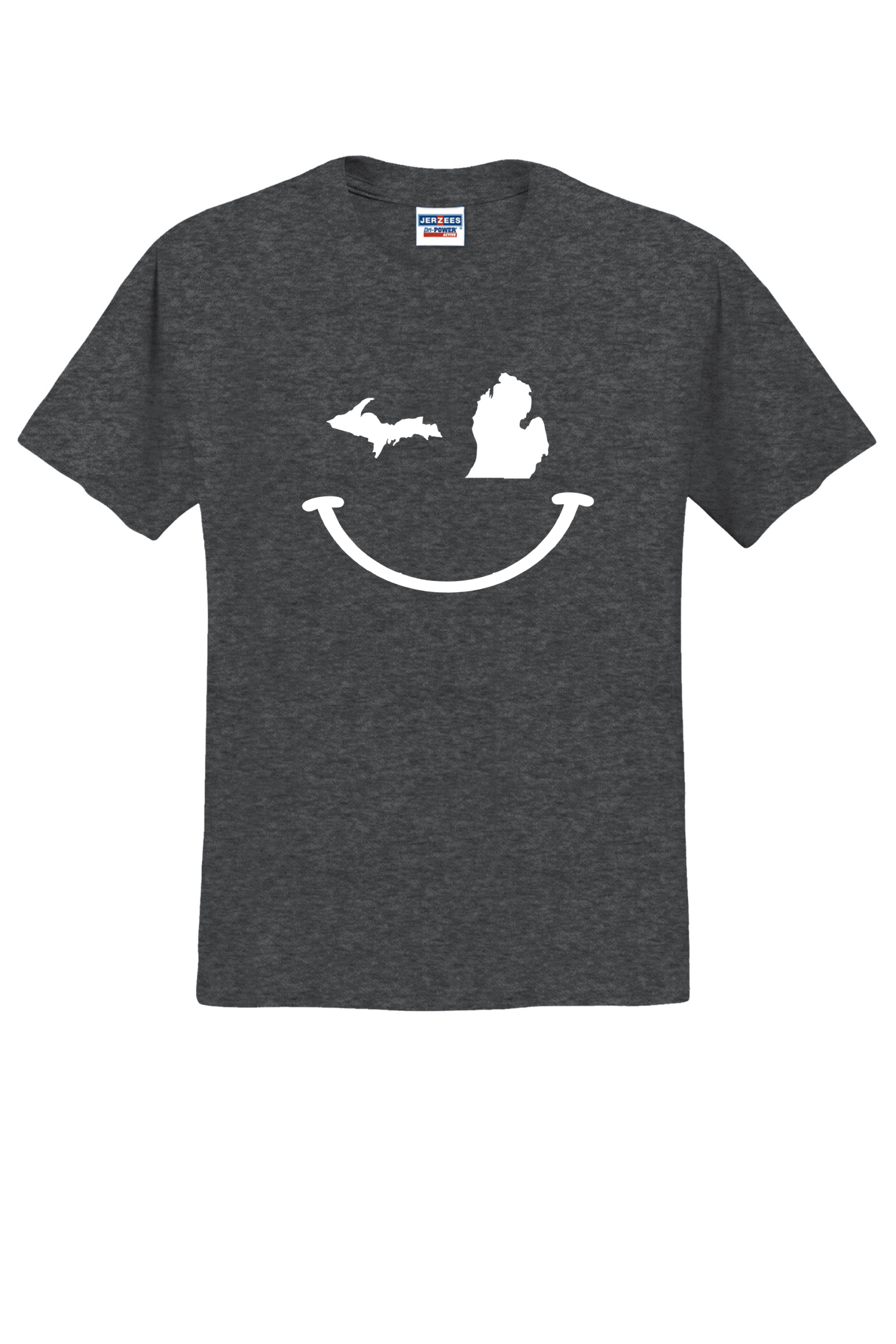 Show your Michigan pride with a wink. This playful Michigan Winky Face tee features the Upper Peninsula and Lower Peninsula as the eyes, bringing a fun, minimalist twist to a classic state design. Printed on a soft, durable Jerzees tee, it’s perfect for locals, tourists, and anyone who loves the Mitten State with a sense of humor. Made from a perfect blend of 50% cotton and 50% polyester, this tee combines comfort and durability with a vibrant, long-lasting print. This Jerzee 5.4 ounce shirt ensures your design stands out with brilliant colors and sharp details, making it ideal for any occasion. Make a statement with a 50/50 T-shirt that’s as stylish as it is comfortable.
