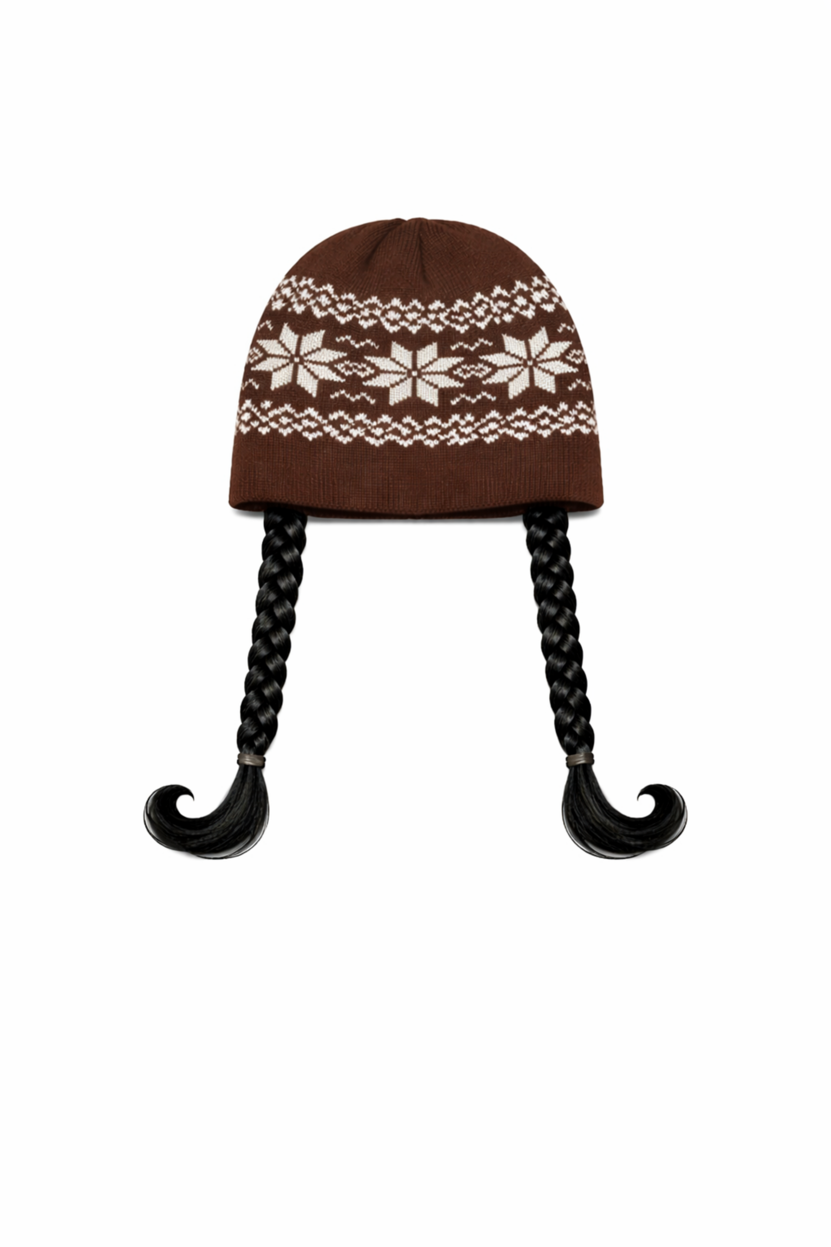 Hats are available in multiple colors, with hair color and braid style options to suit your preference.